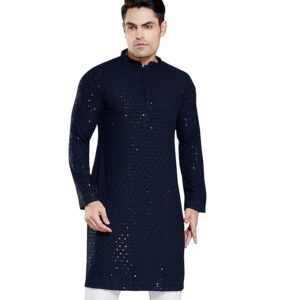 Men’s Sequince Embroidered Cotton Blend Only Slim Fit Kurta